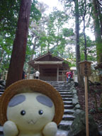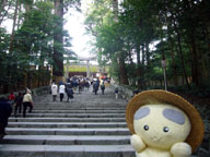 かなり広い境内を歩いて、樹齢数百年だろうと思われる杉林を通って、やっと正宮に到着。この階段の奥が正宮だけど、ここから先は写真撮影禁止もきゅ。